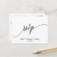 Cette carte postale RSVP présente une typographie minimaliste simple et élégante avec un code QR — il suffit de remplacer le code QR par le vôtre. Vous pouvez customiser cette carte postale pour correspondre à votre thème d'événement mariage. Remarque : le libellé élégant de calligraphie de "rsvp" ne peut pas être supprimé, modifié ou modifié.