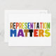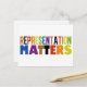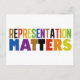 Representation matters postcard. Inclusion of diversity and LGBTQIA role models in tv and movies is so important. A wide variety of race and identities should be shown in society.