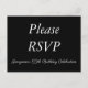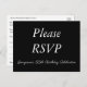 Cette conception respectable et élégante de carte postale RSVP comporte le message "Please RSVP" sur le devant, ainsi qu'une description personnalisable de l'occasion. Il comporte également un formulaire RSVP personnalisable au verso, ainsi qu'une adresse personnalisable à laquelle les cartes RSVP complétées seraient envoyées par la poste. Les cartes RSVP comme celle-ci pourraient peut-être être utilisées pour savoir qui assistera à une réception de mariage, à une fête de Noël, à un dîner ou à une autre célébration.