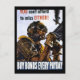 Les obligations étaient une partie importante de l'effort de guerre et contribuaient au financement de la dette massive nécessaire au maintien de l'armée et des alliés de l'Amérique. Cette image compare l'achat de liens avec les combats des soldats sur le terrain en termes d'importance. C'est une corrélation importante dans le monde de la propagande, qui sous-entend que "vous aussi pouvez avoir un impact, même si vous n'êtes pas un soldat." Remarquez l'impressionnant tireur et l'avion qu'il vient de abattre...tout cela rendu possible par l'achat d'obligations de guerre.