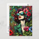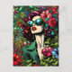 Passe une belle journée ! Une jolie carte postale pour envoyer un ami ou un membre de la famille. Style de bande dessinée hyper réaliste jolies lunettes de soleil femme debout dans un jardin fleuri. L'art coloré.