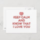Il s'agit de la sélection populaire "Keep Calm", qui est destinée à tous les amateurs. Avec un coeur vintage positionné à la place de la couronne de bijou, et un texte en dessous qui dit "Gardez le calme et savoir que je vous aime".