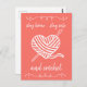 Cette carte postale mignonne lit Restez chez vous, restez en sécurité et crochetez autour d'une pelote de fil en forme de cœur - et est le courrier heureux parfait à inclure dans les colis de vos clients.