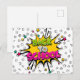 Célébrez le retour à l'école avec une carte postale amusante et colorée de la bande dessinée pop art. Parfait pour envoyer de bons voeux aux étudiants et aux enseignants.