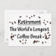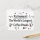Retraite, La plus longue pause café au monde : un dicton humoristique pour ceux qui ont pris leur retraite. Cette mignonne retraite en disant design comporte des fèves de café entourant le texte noir de la citation drôle.