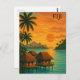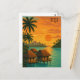 Carte Postale Retro Fiji Tropical Ocean Bungalows Vue coucher de