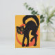 Carte postale rétro de chat noir Halloween. Image vintage restaurée de haute qualité.