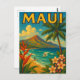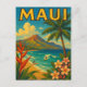 Carte Postale Retro Maui Hawaii Surfer Paradise Travel