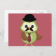 Carte Postale Rétro Owl avec Casquette, cravate et Moustache