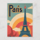 Cet élégant poster vintage saisit la beauté intemporelle de la Tour Eiffel dans un design d'inspiration rétro. Les tons doux et défraîchi et les textures nostalgiques évoquent l'amour du Paris du milieu du siècle, avec la tour iconique qui s'élève gracieusement au-dessus de la ville. Parfait pour les amateurs de charme français, d'affiches de voyage classiques et d'art européen vintage.
