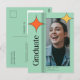 Celebrate your graduate with this modern graduation announcement postcard featuring a vibrant photo layout and stylish retro inspired accents. Designed for high school or university college milestones, it blends a fresh elegant look with bold personality. Personalize the name, class of year, and event details to create a meaningful keepsake. Share your grad moment in a unique way, personalize yours today.