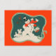 Carte postale présentant une illustration vintage de Noël des années 1940 d'un bonhomme de neige. Customisez-le avec votre propre couleur et texte arrière - plan. Cool rétro !