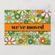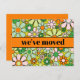 Retro Spring Floral Nouvelle Adresse / Nous avons Déplacé la carte. Fleurs mignonnes, moelleuses, gaies, d'une esthétique vintage et amusante, ambiance des années 1960, dans de jolies couleurs pastel, orange. Le texte peut être customisé et personnalisé. Par Kierkegaard Design Studio.