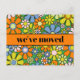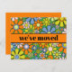 Retro Spring Floral Nouvelle Adresse / Nous avons Déplacé la carte. Fleurs mignonnes, moelleuses, gaies, d'une esthétique vintage et amusante, ambiance des années 1960, dans de jolies couleurs pastel, avec bleu, vert, chartreuse, rose et orange. Le texte peut être customisé et personnalisé. Par Kierkegaard Design Studio.