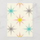 Ignite nostalgic vibes with this playful retro starburst pattern that channels pure mid-century modern magic. Bold atomic stars in varying sizes burst with energy in vibrant teal, sunny yellow, coral orange, cool gray, and soft lime, featuring subtle gradient centers for added depth and movement on a clean off-white background. The iconic 1950s-60s design brings joyful, cosmic flair and timeless optimism.