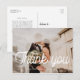 Express votre gratitude et merci à vos invités pour leur présence et de beaux cadeaux avec cette carte postale photo personnalisable. Ajoutez simplement votre photo de mariage préférée, changez les couleurs et écrivez votre propre message de remerciement.