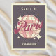 Paris France, Design rétro vintage avec une boule à facettes rose et des teintes pêche abricot. Cette belle carte postale est une carte de vœux parfaite pour les résidents de Paris, les visiteurs, les touristes ou les fans.