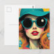 Carte Postale Retro Woman Matching Sunglasses and Hat