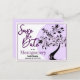 Cette notice de faire-part "Save The Date" présente un arbre d'art moderne Art nouveau noir et violet avec des lampes à cordes. Remplissez les champs du modèle d'informations personnelles, supprimez le texte et/ou cliquez sur personnaliser pour sélectionner une couleur, une taille et un style de police de votre choix.
