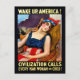 Carte Postale Réveillez l'Amérique, une femme patriote dort, gue