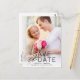 Ce chic, minimaliste à sauver la date présente une typographie simple et présente une grande photo du couple engagé. Sur le devant de la carte postale, une photo complète apparaît avec une superposition en noir qui indique "Enregistrer la date", avec les noms du couple, la date du mariage et l'emplacement du mariage. Ajoutez des détails mariages supplémentaires (comme le site Web du mariage) au dos de la carte postale.