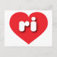Cette carte postale est dotée d'un coeur rouge vif contenant les lettres coques inférieures arrondies et audacieuses ri, une abréviation ludique pour Rhode Island, l'état de l'océan. Le verso de la carte postale est vide, en attendant votre texte customisé ou vos sentiments manuscrits.