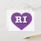 Cette carte postale est dotée d'un coeur violet plein de vitalité, contenant les lettres coques supérieures et chaudes RI, l'abréviation officielle de Rhode Island, l'état de l'océan. Le verso de la carte est vide, en attendant votre texte personnalisé ou vos sentiments manuscrits.