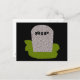 Cette carte postale éffrayante présente une pierre tombale grise avec RIP dans le texte coulant dessus, debout sur une parcelle d'herbe verte. L'arrière - plan est noir, et il ne respecte pas cette conception morbide.