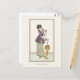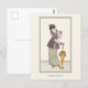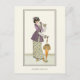 Carte postale avec l'illustration vintage de la mode française de 1912, Robe de Campagne. Une femme assise sur un parasol vêtue d'une veste plissée violette et d'une jupe fleurie. Une numériquement image modifiée et améliorée du Journal des Dames.