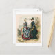 Cette carte postale est une reproduction d'une illustration de mode vintage pour les robes des années 1880.
