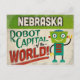 Une carte postale de voyage vintage du Nebraska amusante avec un robot amical avec un texte amusant de style rétro qui dit, "Nebraska, Robot Capital of the world!"