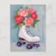 Carte Postale Roller Skates Rose Bouquet Peinture
