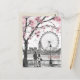 Cette carte postale de voyage, dans le style d'illustration croisée, présente un couple qui marche romantique dans les rues de Londres. C'est une carte postale formidable pour célébrer les anniversaires des relations initiés à Londres, au Royaume-Uni.