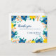 Carte postale de Merci Mariage bleu jaune romantique. Express gratitude sincère avec cette carte postale de Merci Mariage romantique jaune et bleu floral, parfaite pour ajouter une touche personnelle et élégante à votre appréciation post-mariage. Conçu avec un motif floral doux et rêveur, jaune gai et bleu apaisant, cette charmante carte postale allie à merveille esthétique romantique et simplicité moderne. Les délicates illustrations florales créent une ambiance fraîche et d'inspiration nature, idéale pour les mariages du printemps, de l'été ou du jardin. Que vous veniez de nouer le noeud lors d'une cérémonie en plein air rustique, d'un cadre de plage boho ou d'un lieu d'église classique, ce design de carte postale fleurie complète sans effort votre style mariage. Le texte personnalisable vous permet d'inclure vos noms, votre date de mariage ou un court message de remerciement, ce qui en fait un souvenir inoubliable pour les invités, la famille et les proches qui ont célébré votre grand jour. Parfait pour les mariés et les mariés qui apprécient l'élégance florale intemporelle avec une touche de personnalité. Associez-le à une papeterie mariage ou à des faveurs florales pour une suite mariage cohésive. Pour toute personnalisation supplémentaire, n'hésitez pas à me contacter à l'adresse mypaperlove2021@gmail.com