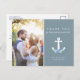 Joli mariage de design floral nautique merci cartes postales avec votre photo mariage préférée, votre message de remerciement personnalisé et les noms.