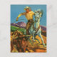 Illustration colorée d'un cow-boy sur un cheval faisant un saut. De la couverture d'une bande dessinée vintage