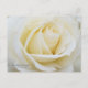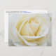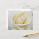 Belle rose blanche immaculée photo sur une carte postale personnalisable. Parfait pour les invitations de mariage ! Des cartes de voeux personnalisables, des timbres-poste et des étiquettes d'adresse sont également disponibles. Photo prise au Mesa Community College Rose Garden à Mesa, Arizona. Photographie originale copyright 2017 par Karen Coffelt.