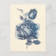 Belle illustration botanique vintage d'une rose et d'un bourgeon dans des tons bleus sur fond beige clair crème pour anniversaire, fête des mères, Saint-Valentin