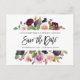 Carte Postale Rose, bordeaux + fig floral enregistrer la date mo