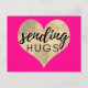 Carte postale rose chaud envoyant des câlins avec un cœur à l'aquarelle dorée au centre sur un fond rose tendance uni.