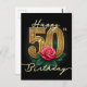 Carte Postale Rose Élégante Fleur et Luxe Doré 50e Anniversaire