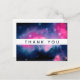Carte de remerciement avec un beau design abstrait en rose et bleu. Des étoiles blanches éparpillées dans cette image du cosmos. Tripant et cool.