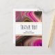 Carte postale Merci au design super et abstrait. Les couleurs rose et noire se mélangent et se mélangent dans un mouvement tourbillonnant. Saupoudrer de parties scintillant en faux or entre les couches. Un cadre rectangle avec fausse feuille d'or superposé avec votre texte personnalisé à l'intérieur.