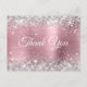 Carte de remerciement rose et argent.