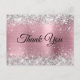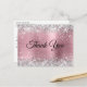 Carte de remerciement rose et argent.