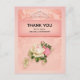 Carte de remerciement avec un bouquet de roses florales avec des fleurs blanches et roses. Un diadème en faux diamants. Le fond est rose avec un motif floral. Joli et élégant design.