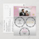 Le design associe un motif métallique or rose à un argent. Le floral en argent gaufré contient des informations que vous souhaitez transmettre à ce moment-là. Un numéro d'or et de parties scintillant unique et une rangée de perles blanches ondulées derrière la photo personnalisée ajoutent du chic au design final. Customisez votre propre message au verso de la carte.
