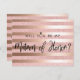 Carte postale simple et élégante Matron d'honneur proposition. Conception avec un script de brosse "Matron d'honneur" sur une parties scintillant d'or rose et rayures de feuille arrière - plan. Ajoutez votre message au verso de cette carte postale. Pour modifier le modèle, cliquez sur customiser plus loin.