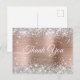 Carte Postale Rose Gold Pailleté Argenté Brillante Merci