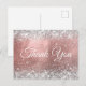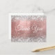 Créez vos propres cartes de remerciement avec de fausses paillettes argentées scintillantes saupoudrées sur un faux foil rose gold brossé.